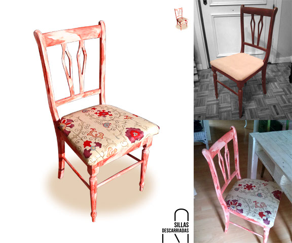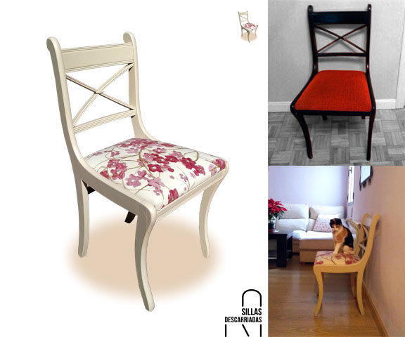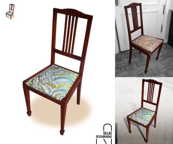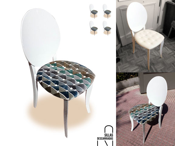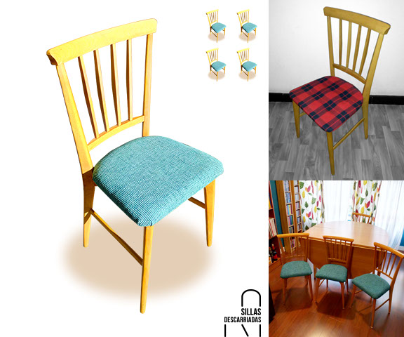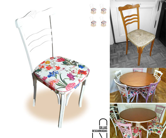 Cuatro sillas Mocholí. Pintadas a la tiza y tapizadas. Encargo.
