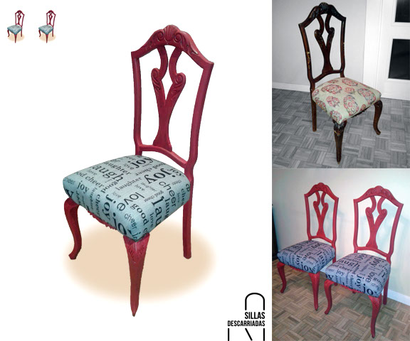 Dos sillas Mocholí. Pintadas a la tiza y tapizadas. Encargo.