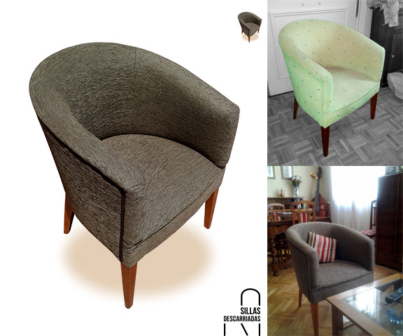 Butaca nórdica. Tapizada el lona algodón gris de espiga. Encargo.