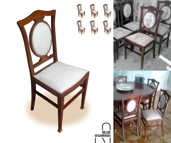 Seis sillas de medallón. Encolar y tapizar. Encargo.