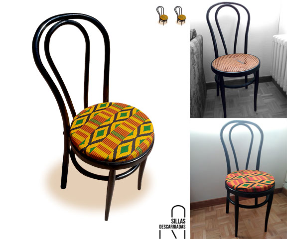 Sillas Thonet. Tapizadas con tela africana. Encargo.