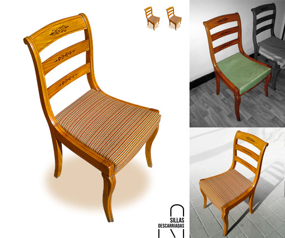Sillas comedor. Madera encolada, tapizadas en loneta de rayas. Encargo.
