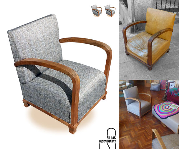 Dos butacas art decó. Restauración de madera, tapizadas en tela jaspeada años 60s. Encargo.