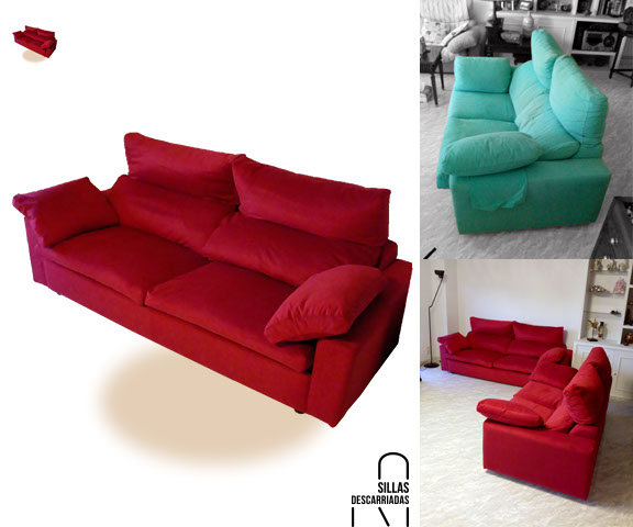 Sofá articulado. Tapizado en alcántara roja. Encargo.