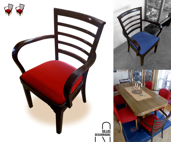 Seis sillas de comedor. Tapizadas en otomán rojo. Encargo.