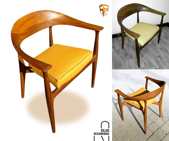 Silla nórdica años 70s. Asiento tapizado en polipiel. Encargo.
