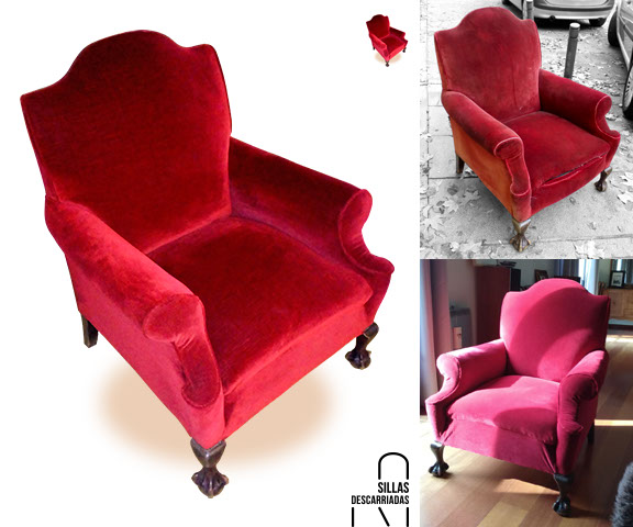 Sillón Chippendale, tapizado con antiguo terciopelo de algodón. Encargo.