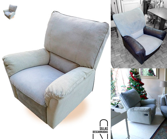 Sillón de piel abatible, confección de fundas en chenilla aterciopelada. Encargo.