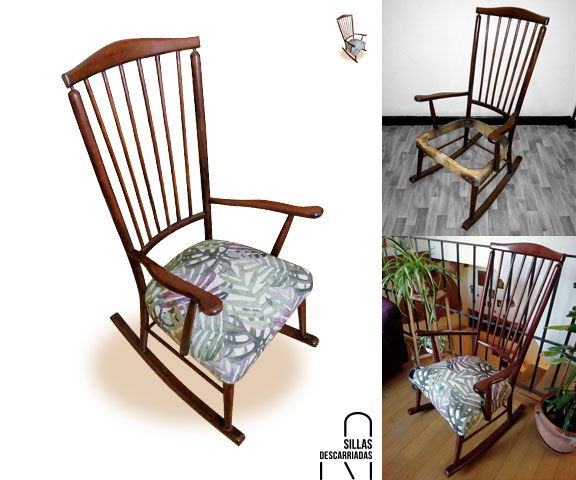 Mecedora. Asiento completo, tapizada en loneta print de flores. Encargo.