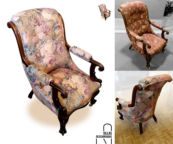 Butaca victoriana. Tapizada en terciopelo acrílico print de flores. Encargo.