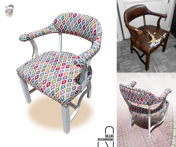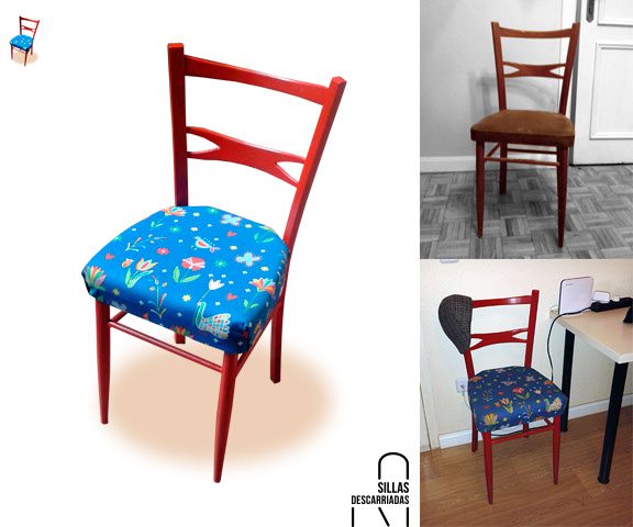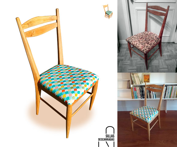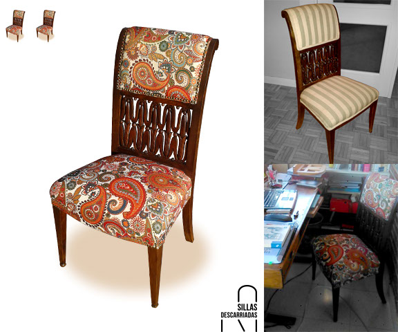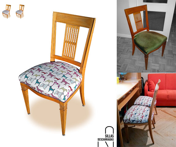 Dos sillas Mocholí. Pintadas a la tiza y tapizadas. Encargo.