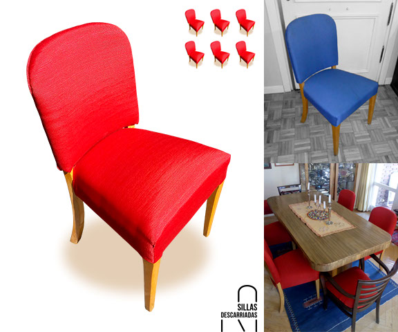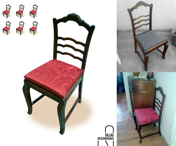 Seis sillas de comedor. Tapizadas en otomán rojo. Encargo.