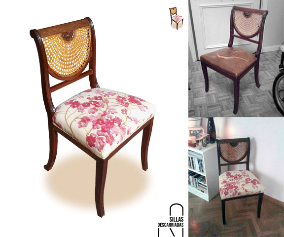 Silla Sheraton. Relleno y tapizada en print de flores. Adquirida.