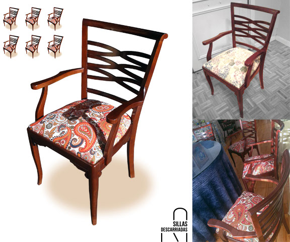 Seis sillas de brazos. Tapizado de los asientos. Encargo.