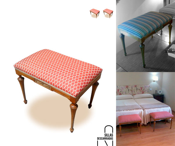 Dos escabeles, Tapizados en jacquard. Encargo.