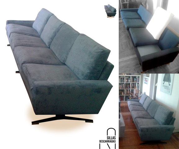 Sofá mid century. Tapizado y confección de cojines con terciopelo sintético. Encargo.