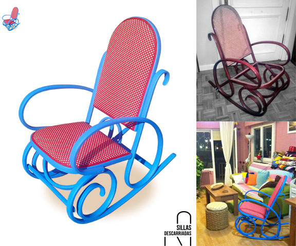 Mecedora Thonet. Madera pintada a la tiza, rellenos y tapicería. Encargo.