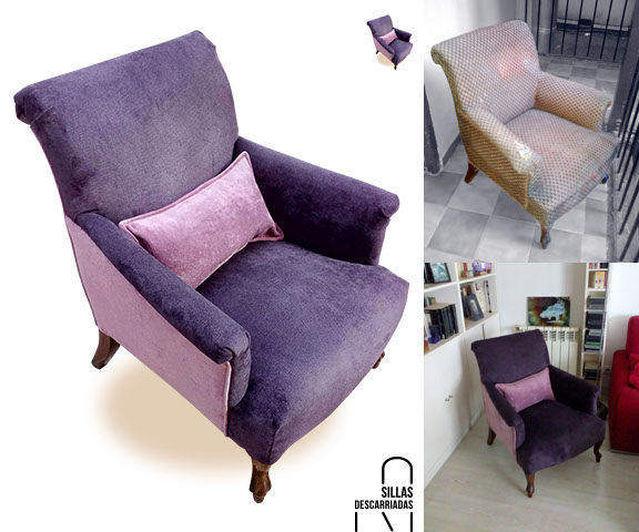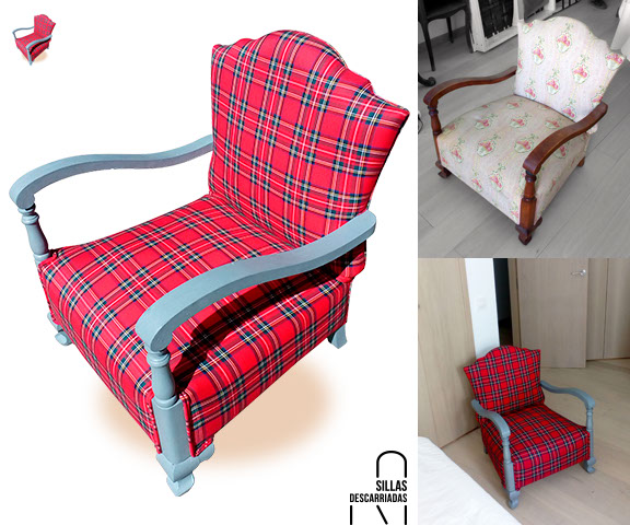 Butaca descalzadora. Tapizada en lona escocesa. Encargo.