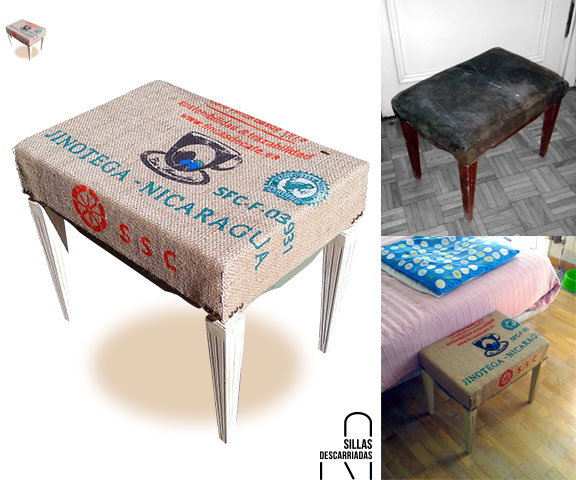 Banco a partir de mesa baja. Relleno y tapicería. Encargo.