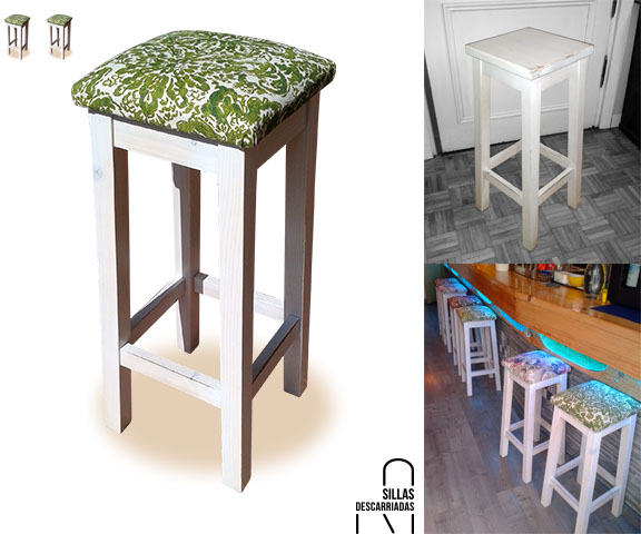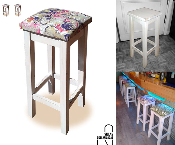 Dos taburetes de bar. Relleno y tapicería. Encargo.