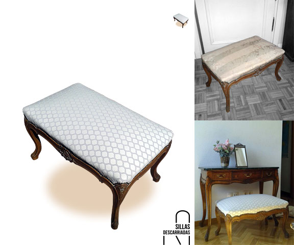 Escabel. Tapizado con remate de tachuelas, confección de funda protectora. Encargo.