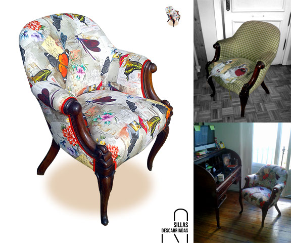 Butaca isabelina. Tapizada con tela print de insectos. Encargo.
