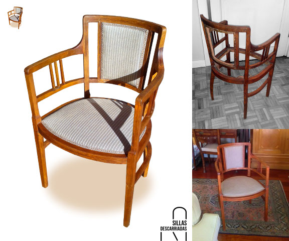 Silla art decó años 20s. Rellenos y tapizado con lona de rallas finas. Encargo.