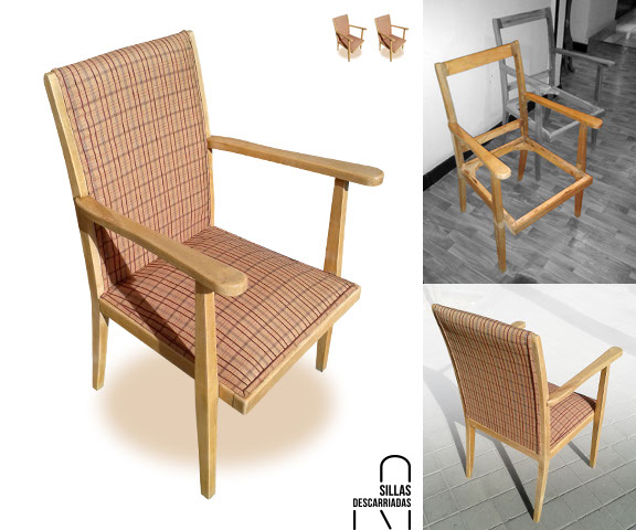 Dos sillones. Madera nudé, rellenos y tapizado en lona de cuadros. Encargo.