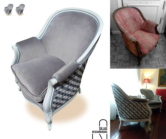 Silla Luis XV. Tapizada con otomán. Encargo.