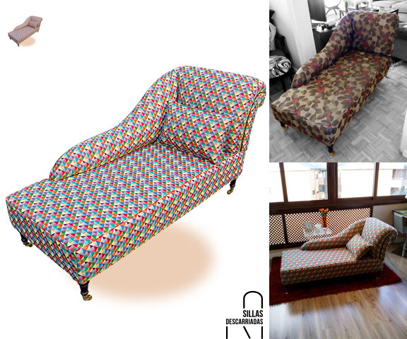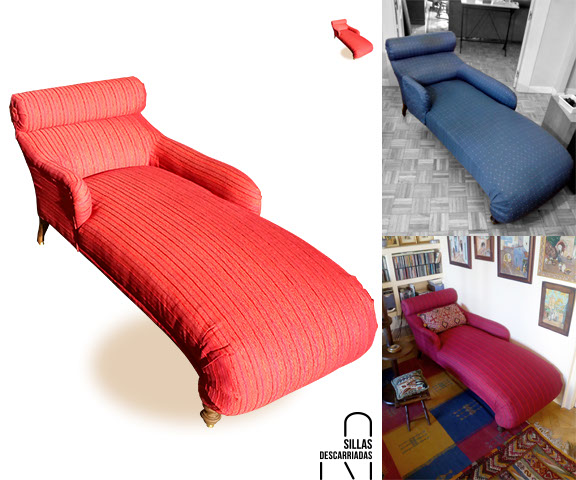 Chaise longue. Tapizada en chenilla de rayas. Encargo.