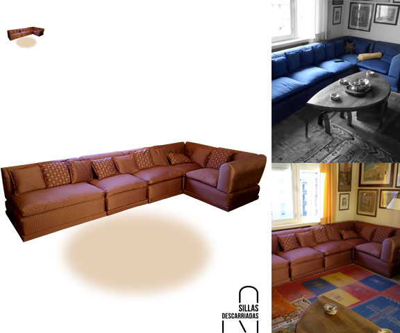 Reparación y tapizado de un sofá modular y cojines. Encargo.