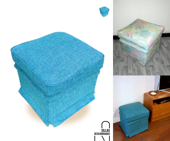 Puf. Tapizado en chenilla de dos azules. Encargo.
