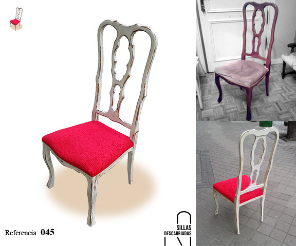 Silla alta. Pintada con esmalte acabado bustaviano, tapizada con chenilla. 60€.