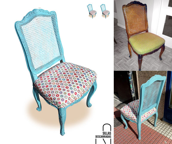 Sillas metálicas. Tapizadas con manta portuguesa y terciopelo. 60€/un.
