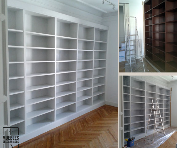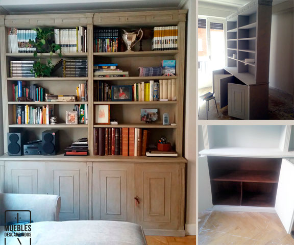 Librería. Pintada a la tiza en blanco nieve y avejentada con cera oscura.