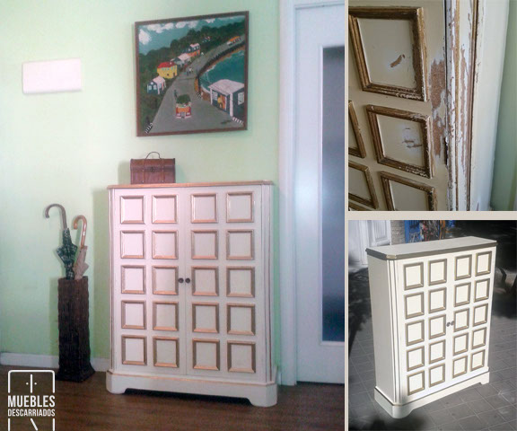 Mueble zapatero. Reparación de madera, pintada con esmaltes.