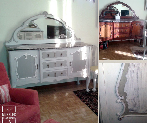 Cómoda con espejo. Pintura a la tiza en tres tonos y encerada.