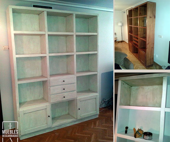 Librería. Pintada a la tiza, interior tintado de nogalina.