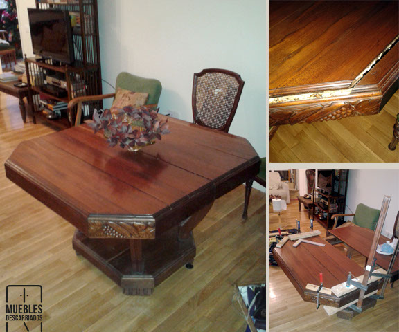 Mesa de comedor extensible. Reparación y encolado de la madera.