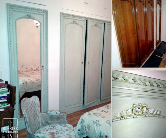 Armario empotrado ropero. Pintura a la tiza envejecida con cera oscura.