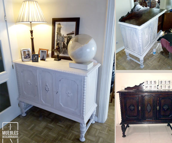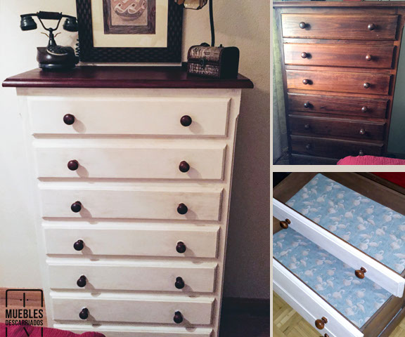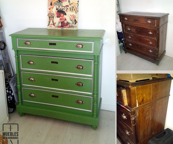 Cómoda. Reparación de carpintería, pintada a la tiza y plata, encerada.