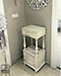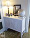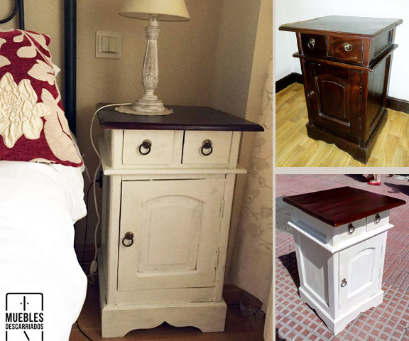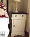 Mesillas. Barnizadas y pintura a la tiza blanca, interior de cajones forrados de tela resinada de flamencos.