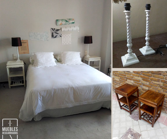 Dos lámparas y mesillas. Pintadas a la tiza.