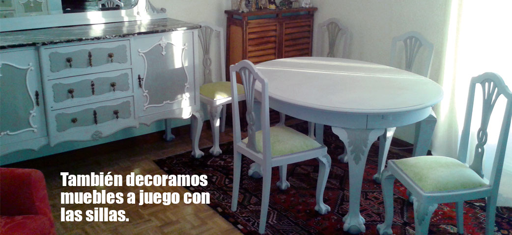 Una actividad en paralelo a las sillas es la decoración de otros muebles. Trabajamos a domicilio en pintura a la tiza, arreglos de carpintería y madera, decapados y laminados. Asesoramos en la decoración de interiores con las últimas tendencias.